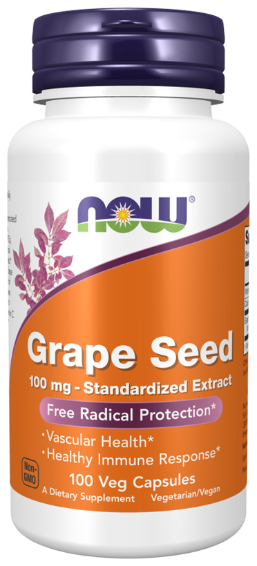 Экстракт виноградных косточек от Now - это высококонцентрированный экстракт, содержащий как минимум 90% полифенолов, в том числе олигомерные проантоцианидины (OPC), полезные водорастворимые сложные соединения, которые нейтрализуют свободные радикалы. В природном виде они содержатся в виноградных косточках. В результате целого ряда исследований было обнаружено, что экстракт виноградных косточек и OPC могут поддерживать здоровье сердечно-сосудистой системы, костей, почек, мозга и других тканей организма. Кроме того, они обеспечивают здоровую и сбалансированную реакцию иммунной системы на окислительный и метаболический стрессы. Витамин C был добавлен из-за его антиоксидантного потенциала.