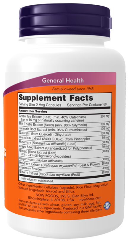 Данная комплексная смесь из мощных экстрактов трав и фруктов была разработана для обеспечения широкого спектра флавоноидов с научно доказанной способностью нейтрализовать свободные радикалы. Эти травы и фрукты на протяжении веков славились во всём мире своей способностью поддерживать оптимальное самочувствие.