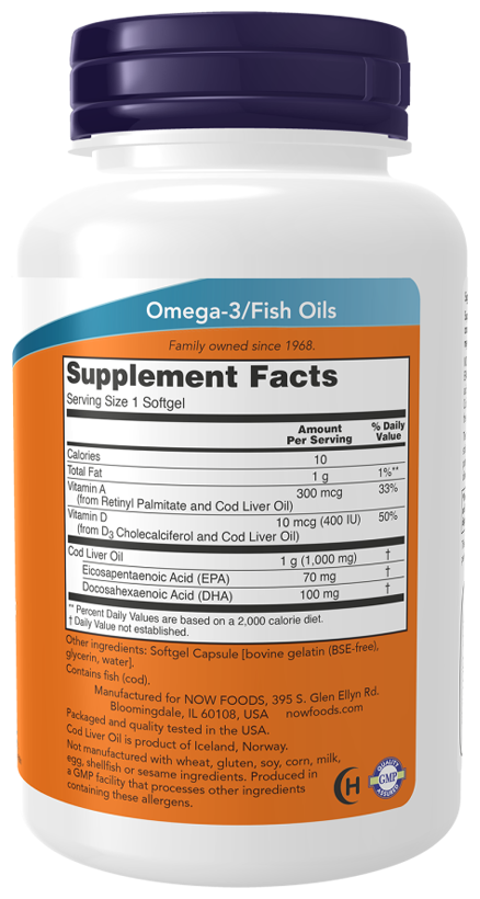 Cod Liver Oil - это натуральный общеукрепляющий комплекс. В его основу положен очищенный жир из печени трески. В нем содержится большое количество полиненасыщенных жиров Омега-3, витамин D и E. Эти компоненты действуют в синергии и обеспечивают мощную поддержку организму уже с первой порции.