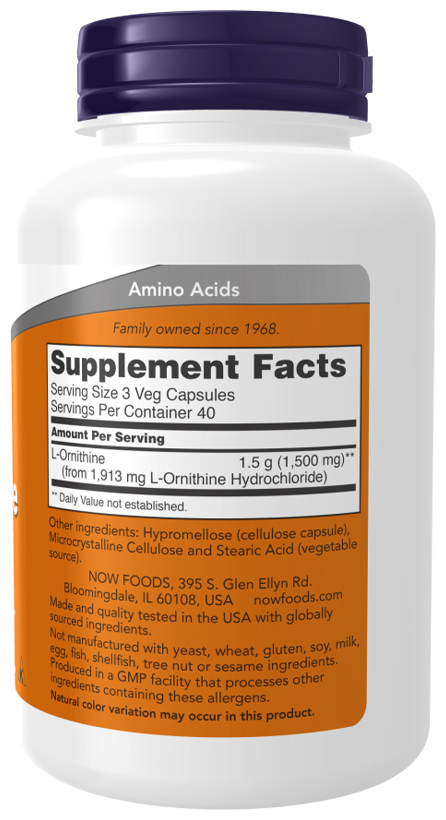 NOW L-Ornithine 500 mg, L-Орнитин 500 мг, 120 капсул