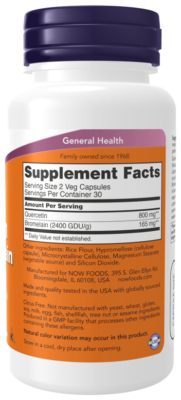Quercetin with Bromelain - это насыщенный питательный комплекс. В его основе мощный биофлавоноид, полученный Софоры японской, и комплекс ферментов из стебля ананасов. Компоненты действуют в синергии и быстро метаболизируется в организме.