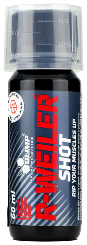 Предтренировочный комплекс R-Weiler Shot от Olimp рекомендуется использовать в условиях интенсивных физических нагрузок. За счет жидкой формы он быстро усваивается организмом. Компонентную матрицу комплекса составляют кофеин, таурин, бета-аланин и тирозин. Сообща данные соединения создают условия для повышения физической выносливости организма и для предупреждения ментальной усталости.