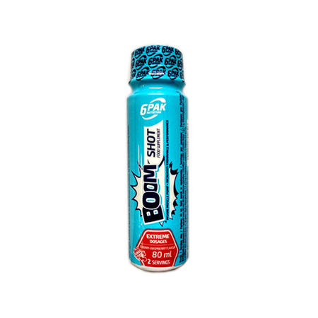 6PAK NUTRITION BOOM Shot – это препарат для приема перед тренировкой, высшего качества, созданный с мыслью о спортсменах, которые любят эффект пампинга и ищут способ его достигнуть. Состав на 100% на основе активные вещества, являющиеся сильными предшественниками оксида азота, такие как: малат citrulline, AAKG (альфа-кетоглютарата l-аргинин), а также свободная форма l-аргинин. Они влияют на расширение кровеносных сосудов, что отражается как на желаемый визуальный эффект, как и увеличение их пропускной способности, что позволяет быстрее насыщать кислородом и питать клетки всего тела (в том числе мышечной ткани). Результатом этого является ускорение восстановительных процессов, сокращая тем самым время, необходимое для возвращения работоспособности (даже после очень тяжелой тренировки). Следует помнить, что каждая порция также влияет на поддержание положительного баланса азота, который является очень важным аспектом для эффективного протеканию анаболических процессов.