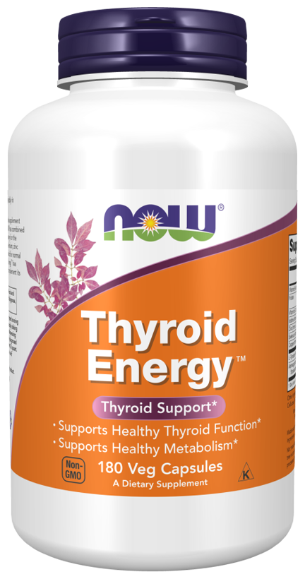 NOW сочетает в себе йод и тирозин, два компонента, необходимые для синтеза секрета щитовидной железы. Минералы селен, цинк и медь были добавлены в качестве кофакторов, необходимых для нормальной функции щитовидной железы. Кроме того, NOW Thyroid Energy содержит аюрведический травяной экстракт ашваганды в качестве дополнения к питательным компонентам.